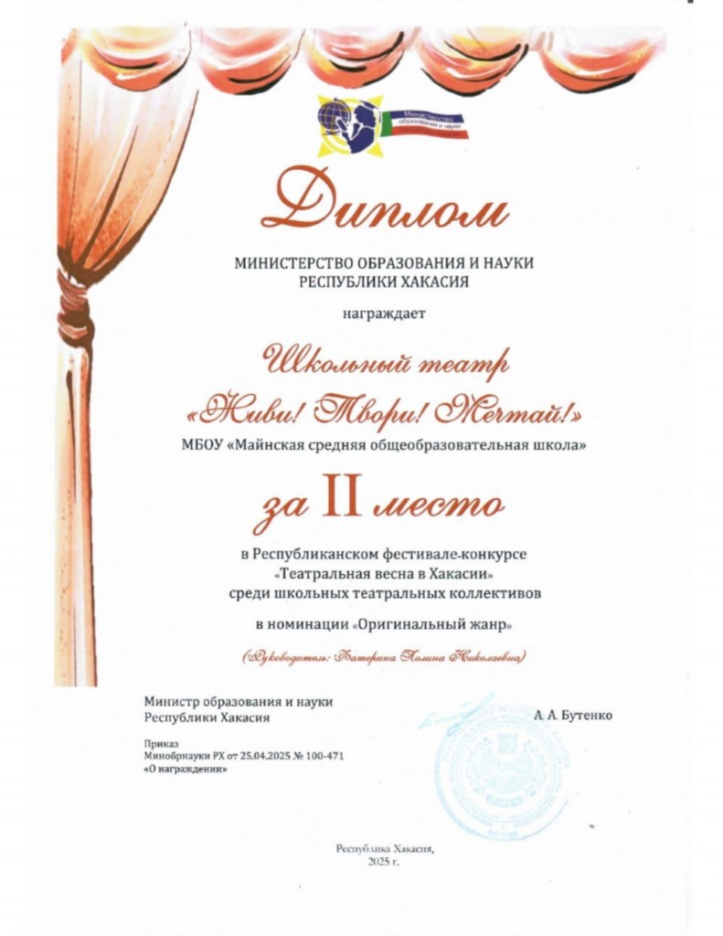 Рабочая программа школьного театра "Живи. Твори. Мечтай";
