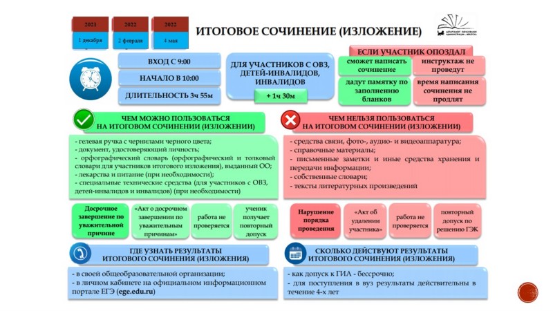 Итоговое сочинение (изложение) является допуском выпускников к государственной итоговой аттестации. Изложение вправе выбрать обучающиеся с ограниченными возможностями здоровья.